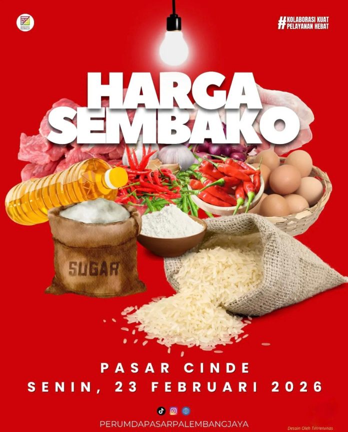 Palembang – Berikut ini adalah daftar harga sembako di pasar tradisional Cinde tanggal 23 Februari 2026.