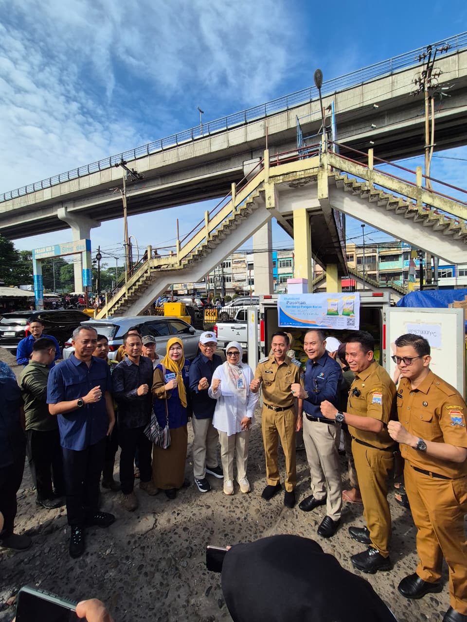 Direktur Utama Perumda Pasar Palembang Jaya, Dedi Siswoyo mendampingi Walikota Palembang Bapak Ratu Dewa untuk memonitor stabilitas harga dan operasi pasar komoditas beras dan minyak goreng di Pasar KM 5.