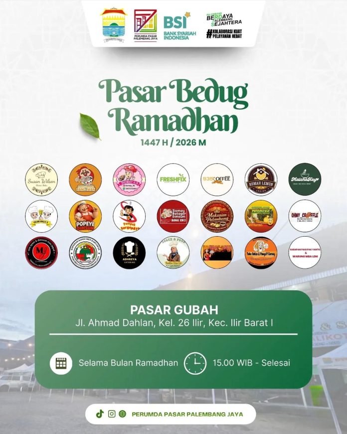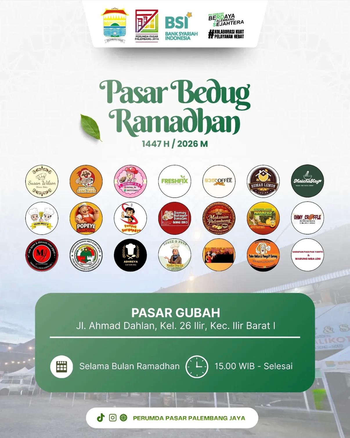 Hallo warga Palembang, jangan lewatkan kemeriahan Pasar Bedug Ramadhan yang berlokasi di Pasar Gubah, Jl. Ahmad Dahlan, Kel. 26 Ilir, Kec. Ilir Barat I.