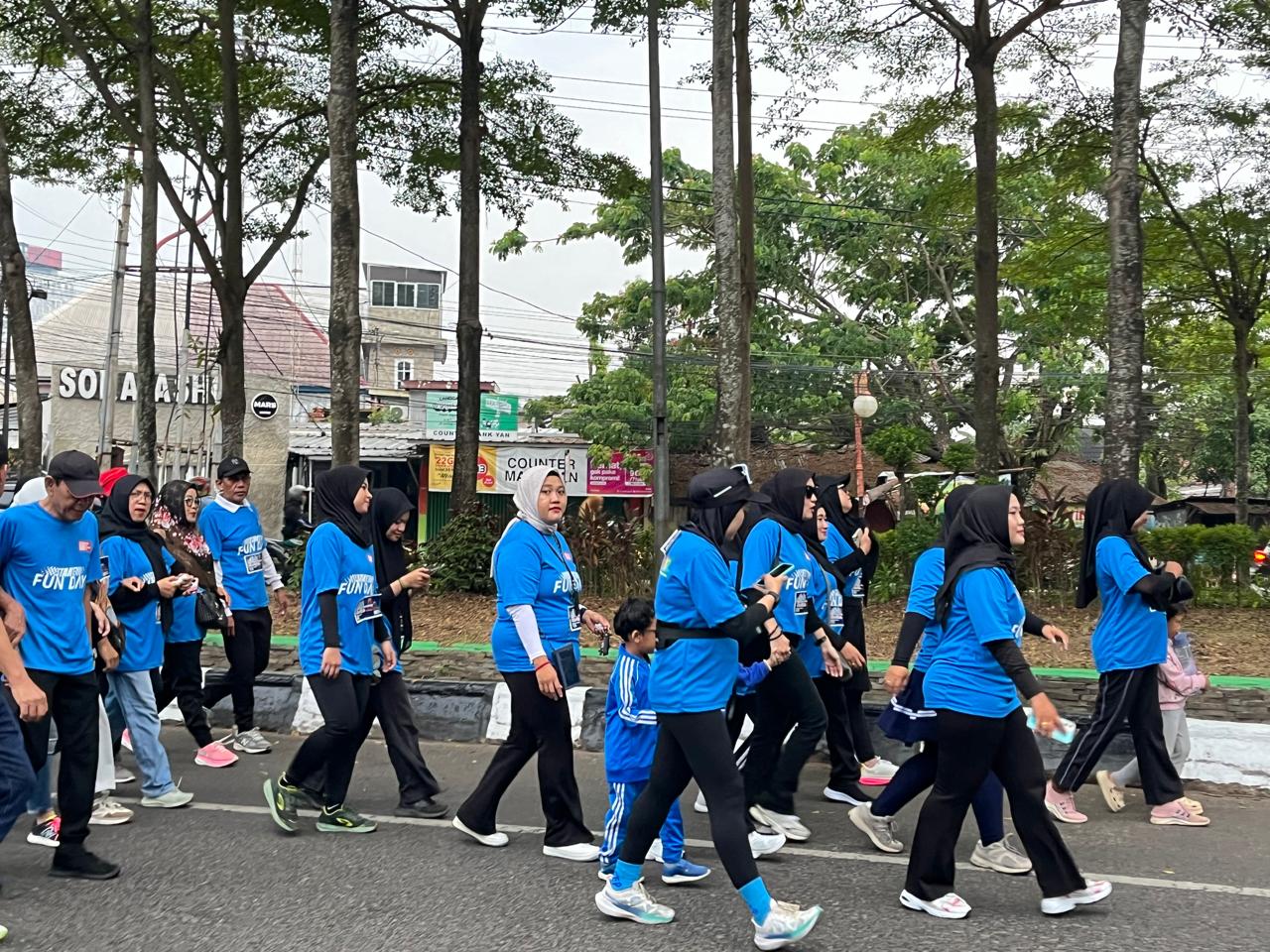 Acara dimulai dengan jalan santai yang diikuti oleh ratusan peserta, membanjiri Pelataran Pasar Bukit Kecil dengan antusiasme.